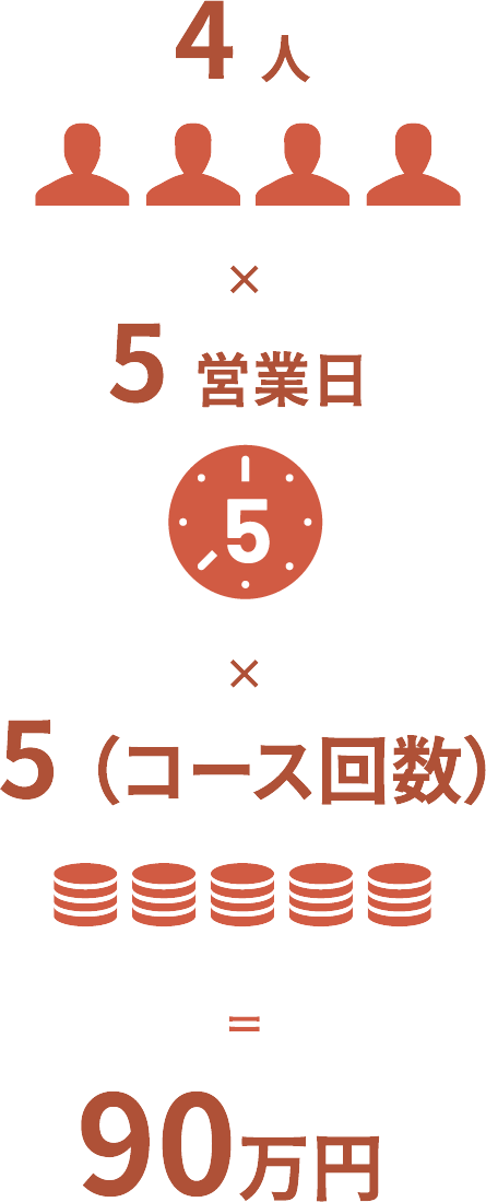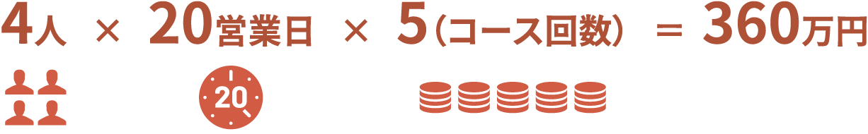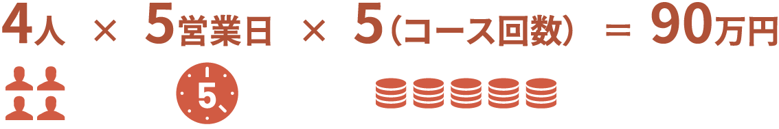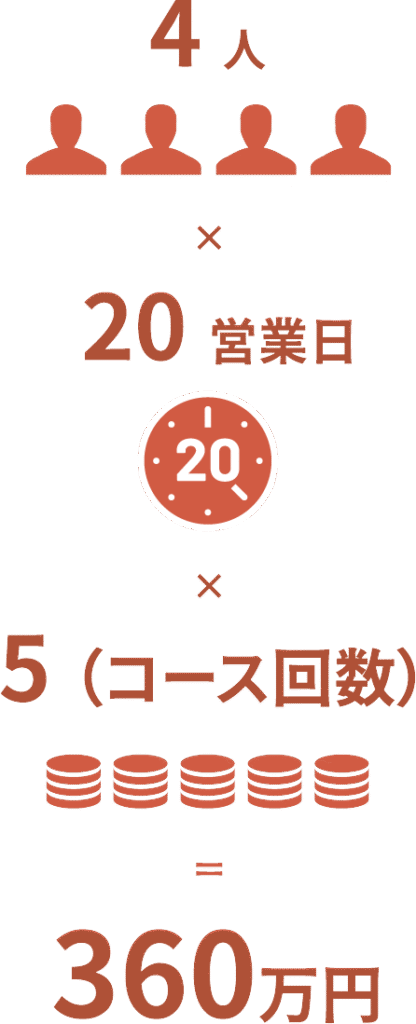 1日4人(フェイシャル2:スカルプ2)のお客様とコース契約ができた場合…
